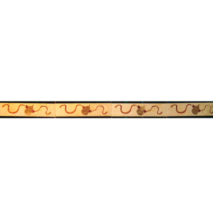 拼花腰线是建筑装饰的一种作法,一般指建筑墙面上的水平横线,在外墙面上通常是在窗口的上或下沿(也可以在其它部位)将砖挑出60×120mm,作成一条通长的横带,主要起装饰作用。建筑中还有用这种方法的,不过有些是用不同的装饰材料或不同的颜色来作腰线,在卫生间的墙面上用不同花色的瓷砖(有专门的腰线瓷砖)贴一圈横向的线条,也称为腰线。